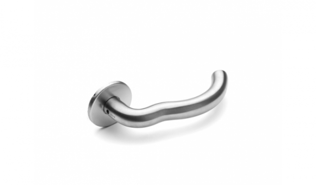 Lever handle 16 mm M shape, half, 8x8mm, snap on cover ball bearing rose cc 30/38 mm, satin stainless steel AISI 316, Lever supplied without accessories