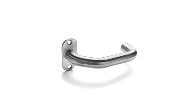 Lever handle 16 mm UF shape, half, 8x8mm, solid oval ball bearing rose cc 38 mm, satin stainless steel AISI 316, Lever supplied without accessories