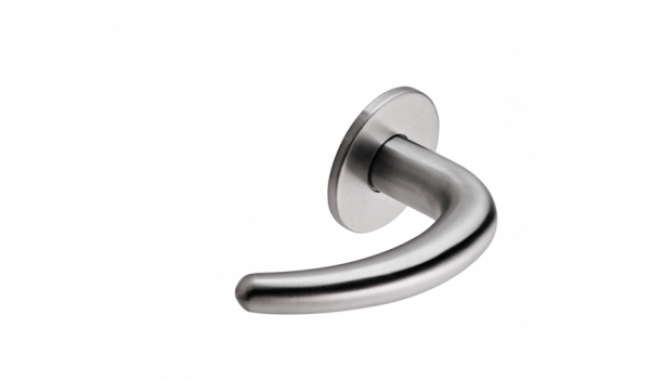 Lever handle 19 mm Coupe, pair, 8x8mm, snap on cover rose cc 30/38 mm, for door thickness 33-59 mm, satin stainless steel AISI 304, Lever supplied with M4x110 mm and M5x39 mm screws