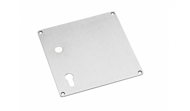 Square back plate, 175x175x2mm f/DIN, with lever hole and PZ, left, X= 72 mm, satin stainless steel AISI 304